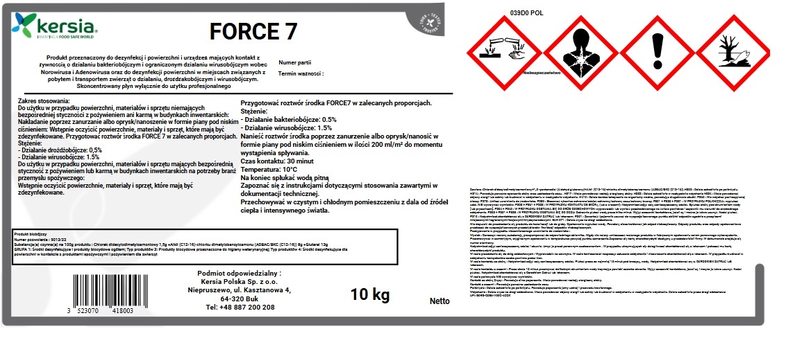 Zawiera : Chlorek didecylodimetyloamoniowy+ 1,5 -pentanedial (Aldehyd glutarowy)+ Alkil (C12-16) chlorku dimetylobenzyloamonu (ADBAC/BKC (C12-16))
