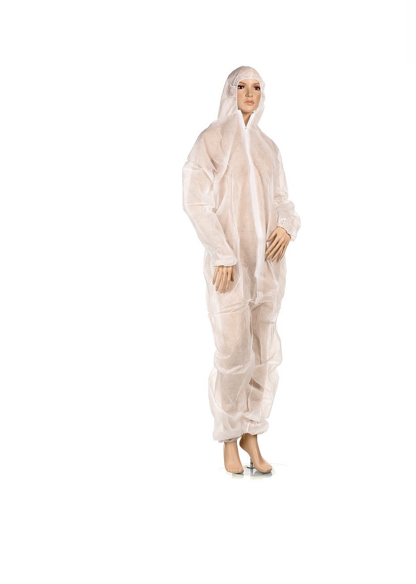 Kombinezon ochronny jednorazowy z kapturem.